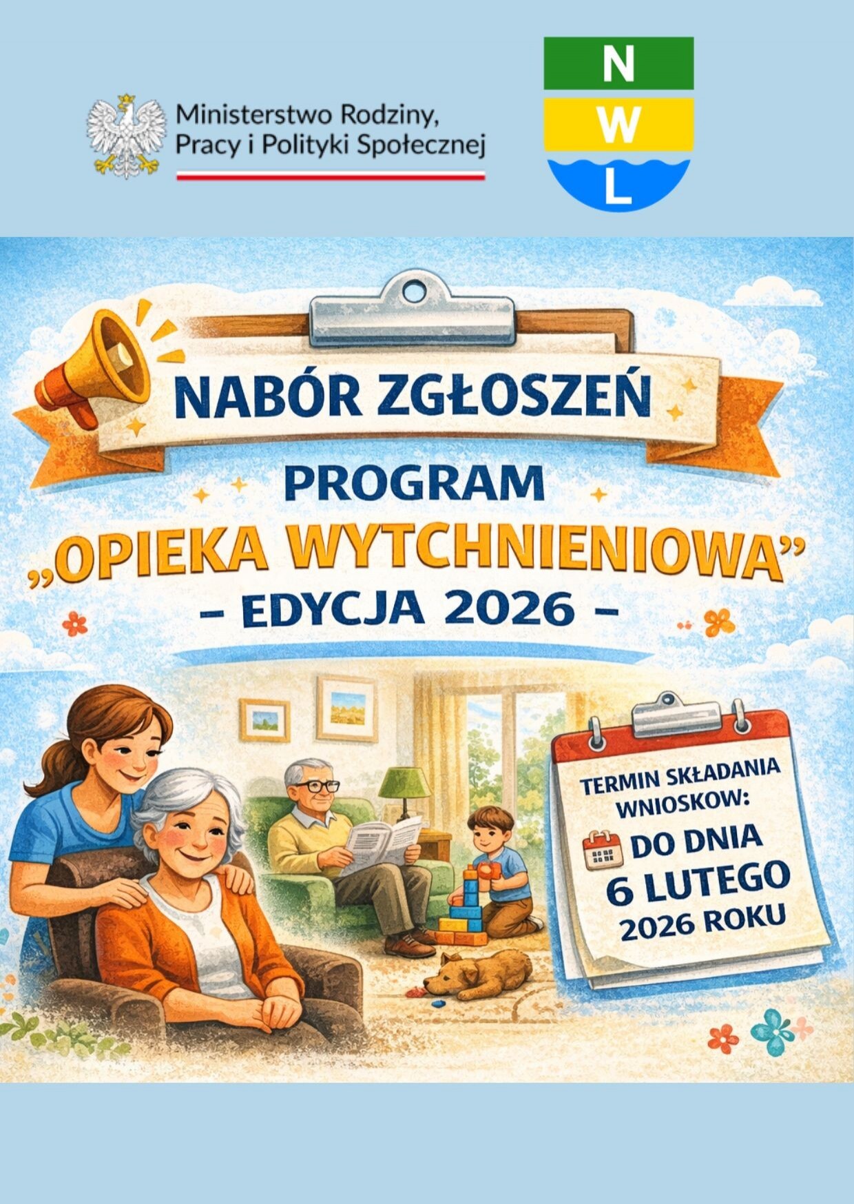 Gminny Ośrodek Pomocy Społecznej w Nowej Wsi Lęborskiej informuje, że rozpoczyna nabór zgłoszeń do Programu “Opieka wytchnieniowa” dla Jednostek Samorządu Terytorialnego – edycja 2026.