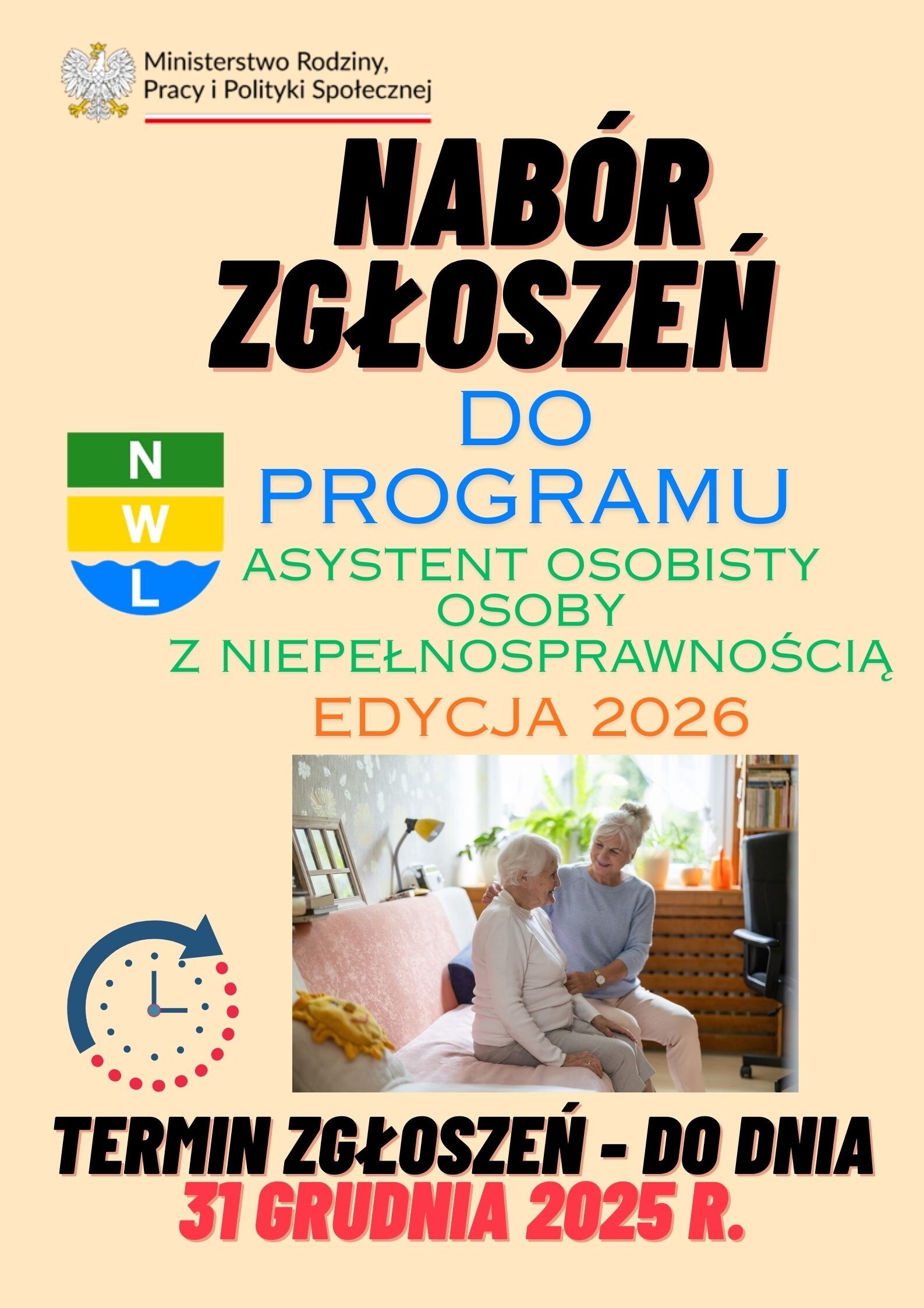 Gminny Ośrodek Pomocy Społecznej w Nowej Wsi Lęborskiej, ogłasza nabór zgłoszeń do Programu „Asystent osobisty osoby z niepełnosprawnością” dla Jednostek Samorządu Terytorialnego – edycja 2026.